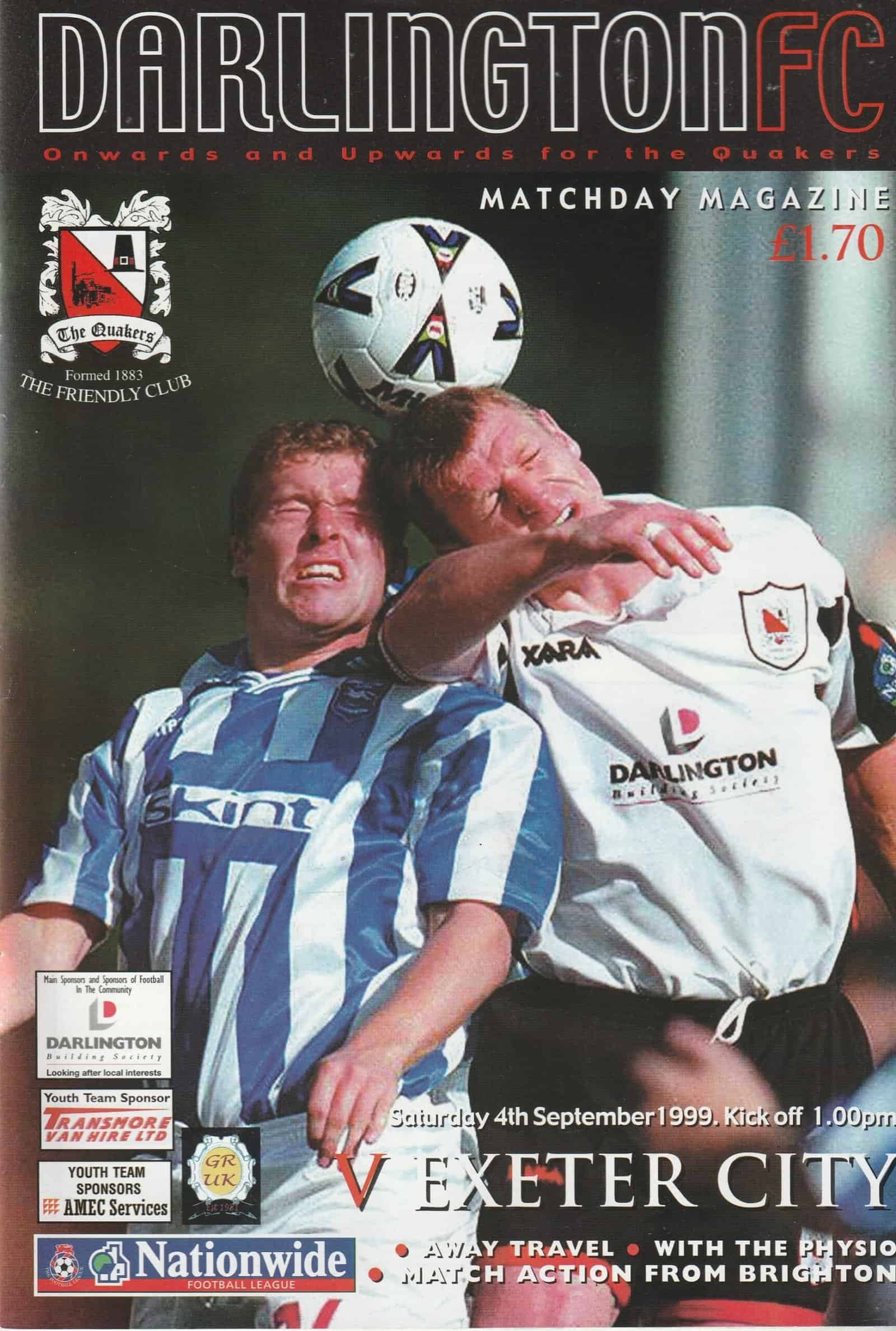 Match: Darlington v Exeter City Competition: League Division 3 Date: 04-Sep-1999 Comments: Rating: 4 Condition: Very good Weight in grams: 120