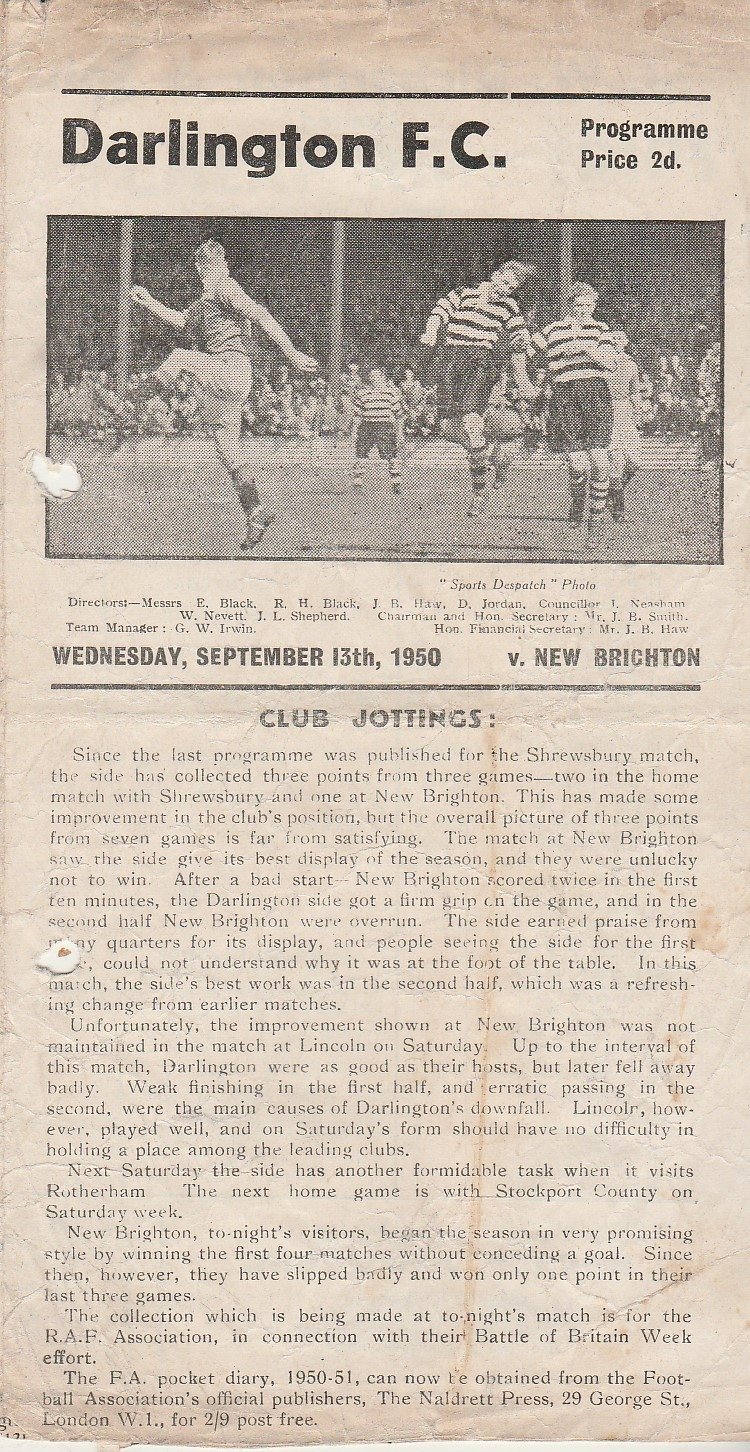 Darlington v New Brighton 13-Sep-1950