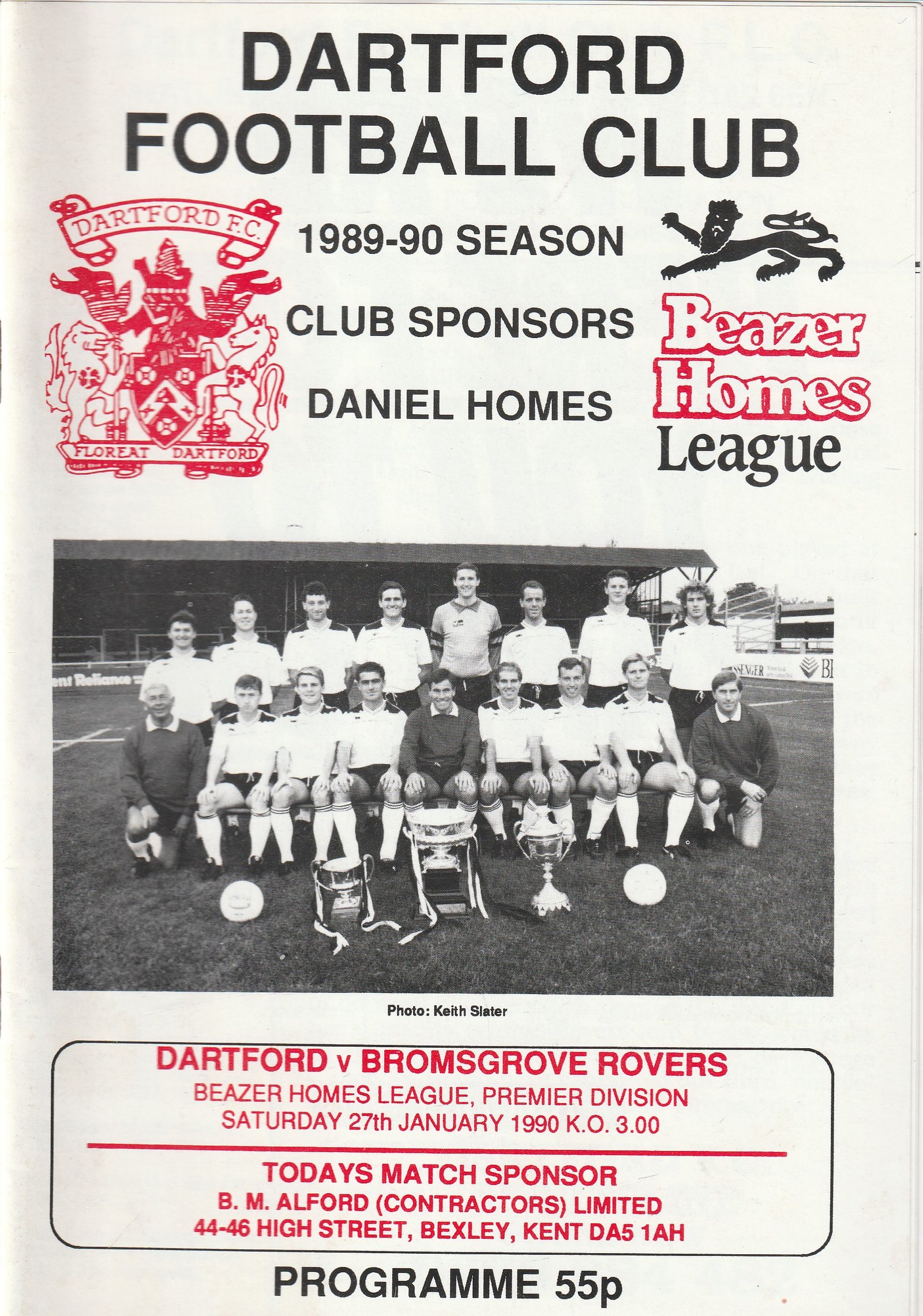 Match: Dartford v Bromsgrove Rovers Competition: Beazer Homer League Premier Division Date: 27-Jan-1990 Comments: Rating: 4 Condition: Good Weight in grams: 100