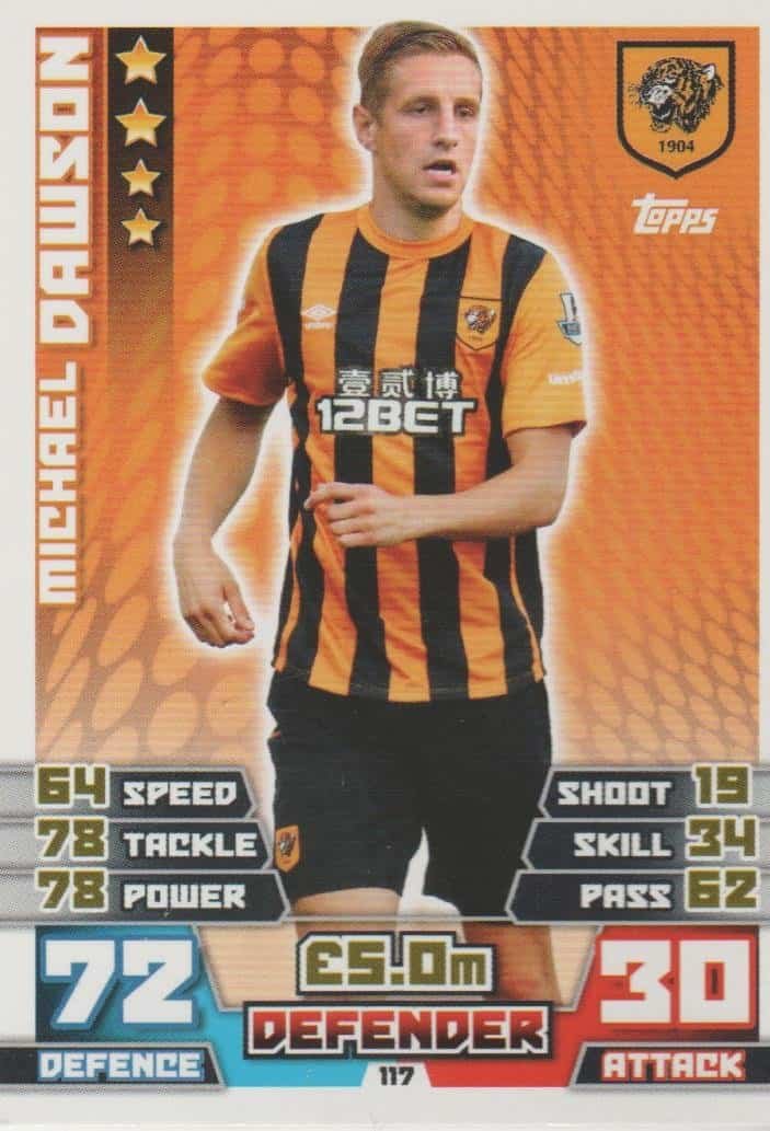 Title: Topps Match Attax Trading Card 2014/15 Club: Hull City Player: Michael Dawson Collection number: 117 Condition: Very good Rating : 4 Weight: 20 grams