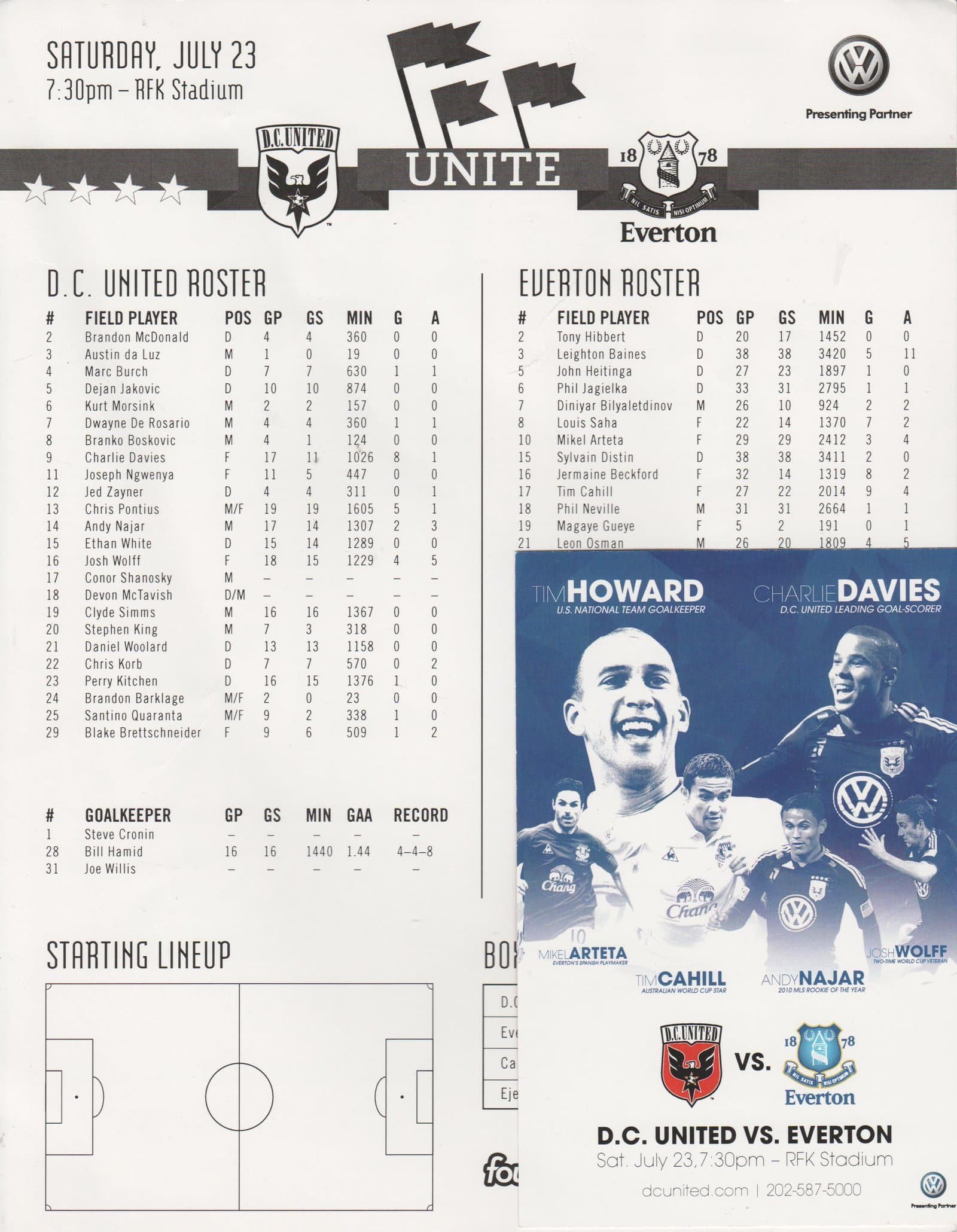 Match: DC United v Everton Competition: Friendly Date: 23-Jul-2011 Comments: Single card roster + flyer card Rating: 4 Condition: Very good Weight in grams: 20