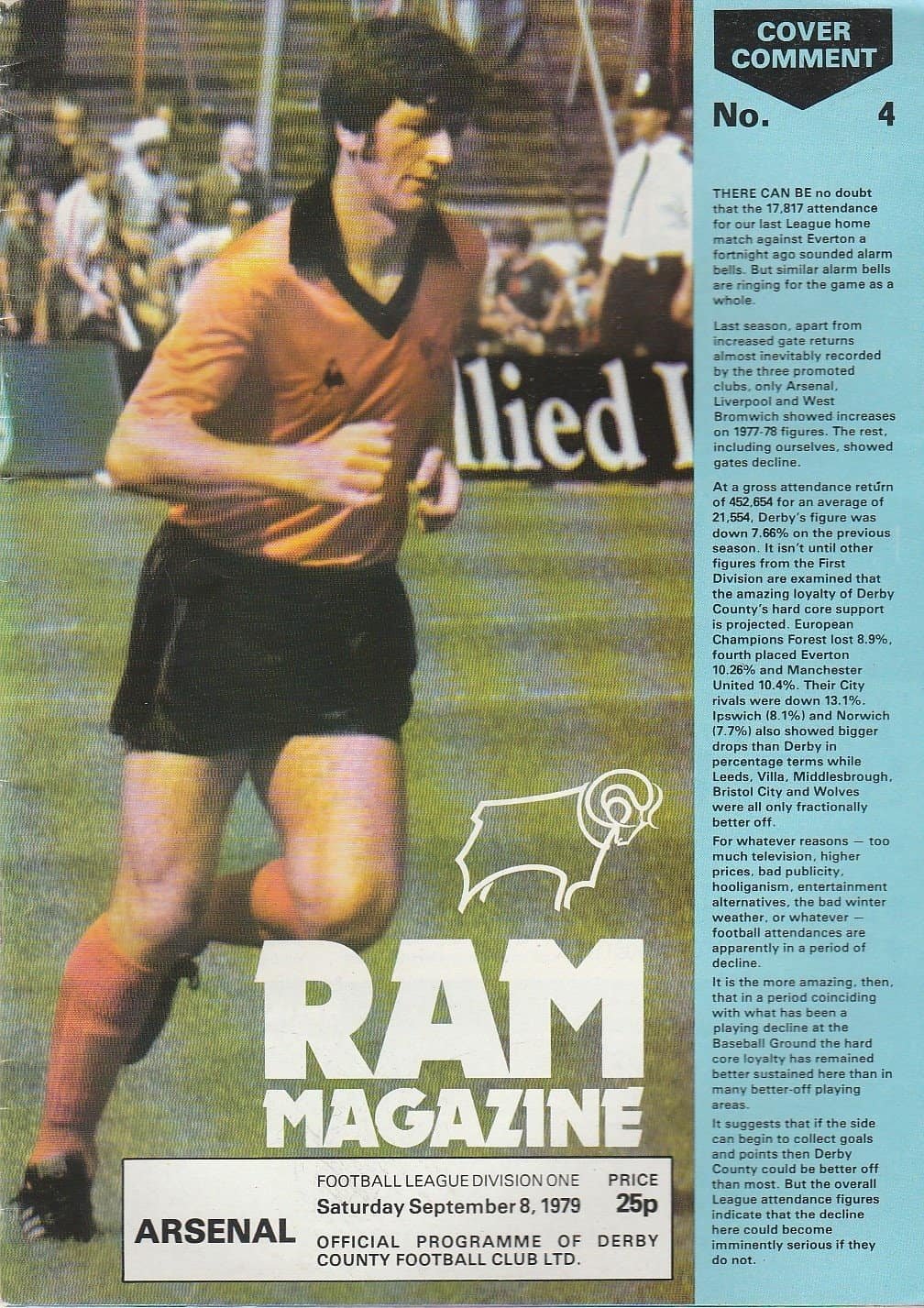 Match: Derby County v Arsenal Competition: League Division 1 Date: 08-Sep-1979 Comments: Rating: 4 Condition: Very good Weight in grams: 120