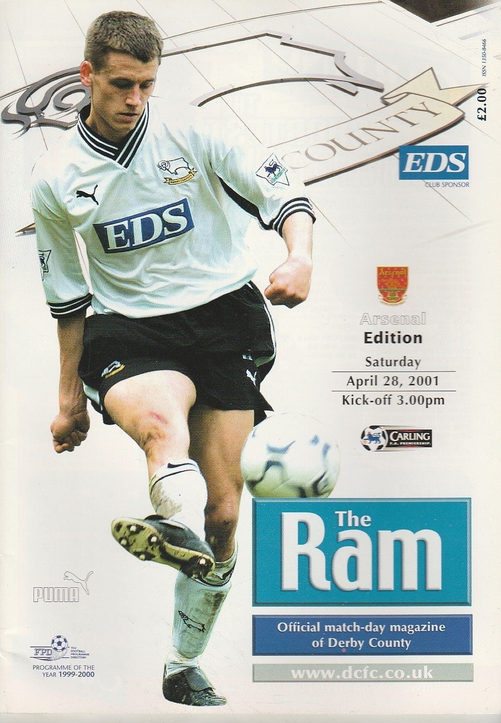 Match: Derby County v Arsenal Competition: Carling Premiership Date: 28-Apr-2001 Comments: Rating: 4 Condition: Very good Weight in grams: 240