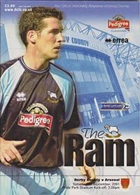 Match: Derby County v Arsenal Competition: Premier League Date: 29-09-2001 Comments: Centre fold poster missing Rating: 2 Condition: Very good Weight in grams: 140