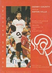 Match: Derby County v Aston Villa Competition: League Division 1 Date: 15-09-1990 Comments: Rating: 4 Condition: Very good Weight in grams: 60