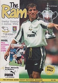 Match: Derby County v Aston Villa Competition: FA Cup 4th Round Date: 25-01-1997 Comments: Last season at Baseball Ground Rating: 5 Condition: Excellent Weight in grams: 100