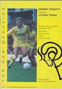 Match: Derby County v Luton Town Competition: League Division 1 Date: 03-11-1990 Comments: Rating: 4 Condition: Very good Weight in grams: 60