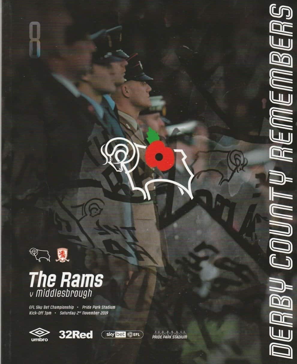 Match: Derby County v Middlesbrough Competition: League Championship Date: 02-Nov-2019 Comments: Rating: 4 Condition: Very good Weight in grams: 240