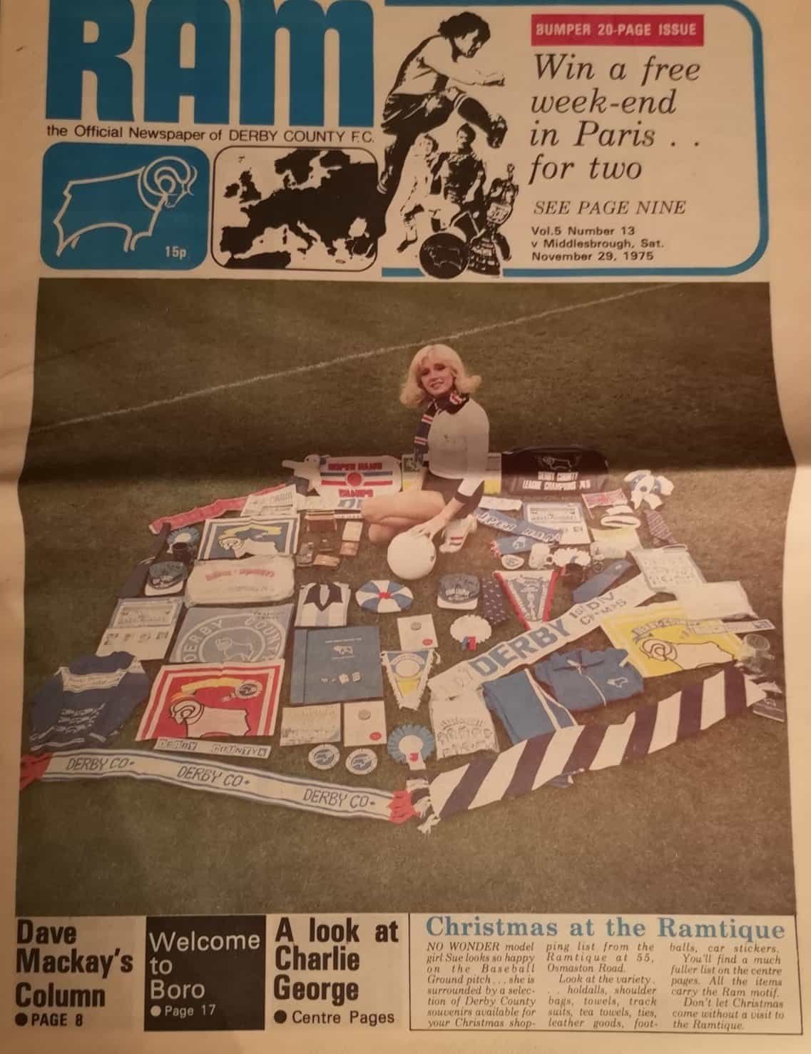 Match: Derby County v Middlesbrough Competition: League Division 1 Date: 29-Nov-1975 Comments: Tabloid issue Rating: 4 Condition: Very good Weight in grams: 160