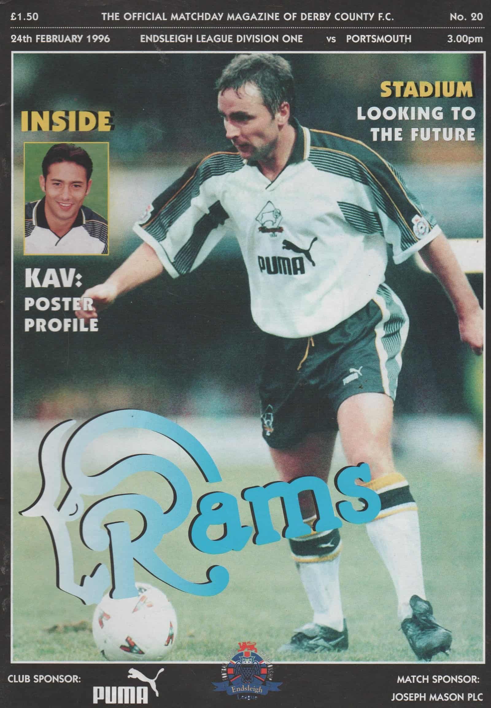 Match: Derby County v Portsmouth Competition: League Division 1 Date: 24-Feb-1996 Comments: Rating: 3 Condition: Team changes Weight in grams: 100