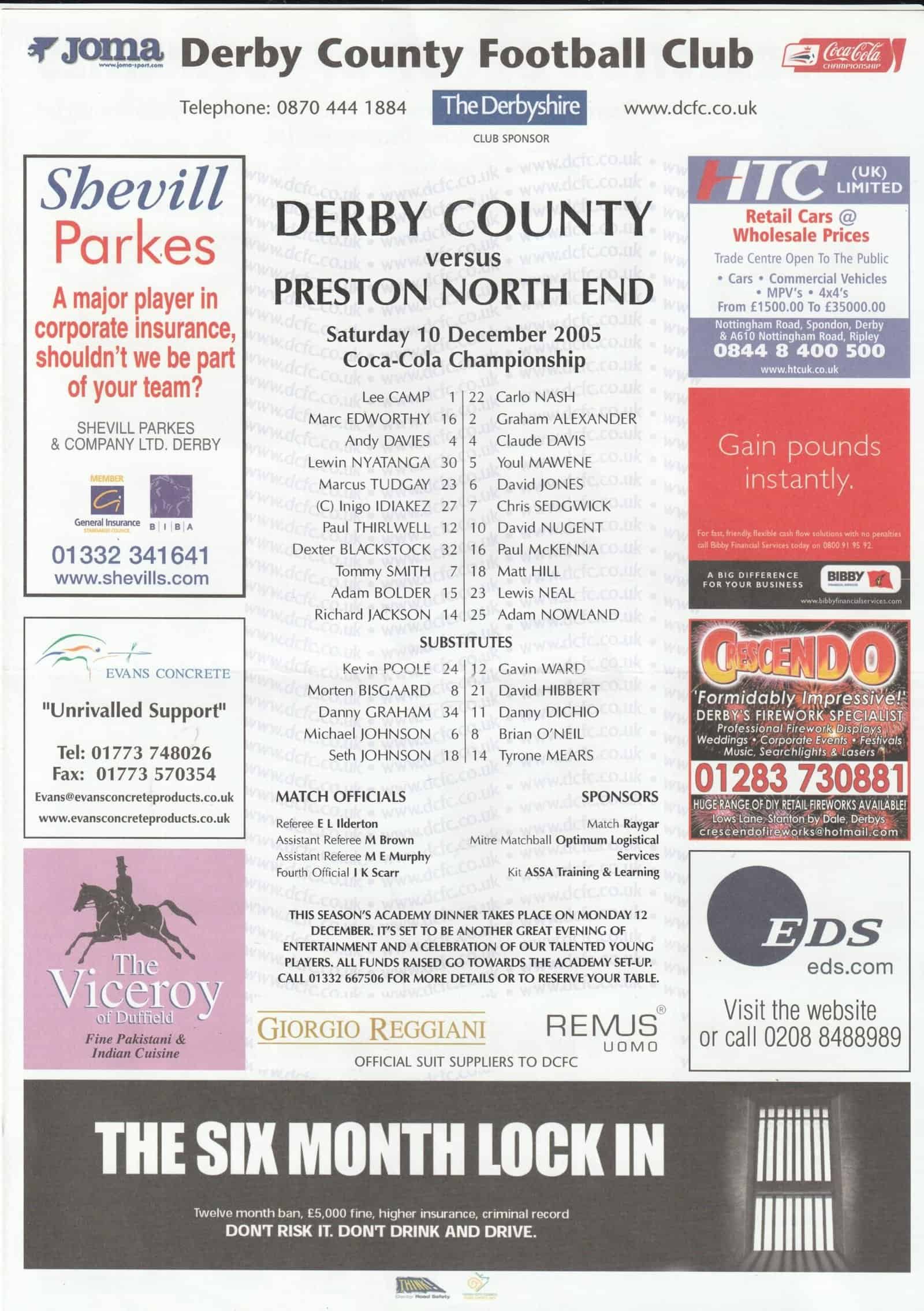Match: Derby County v Preston North End Competition: League Championship Date: 10-12-2005 Comments: Rating: 4 Condition: Very good Weight in grams: 20
