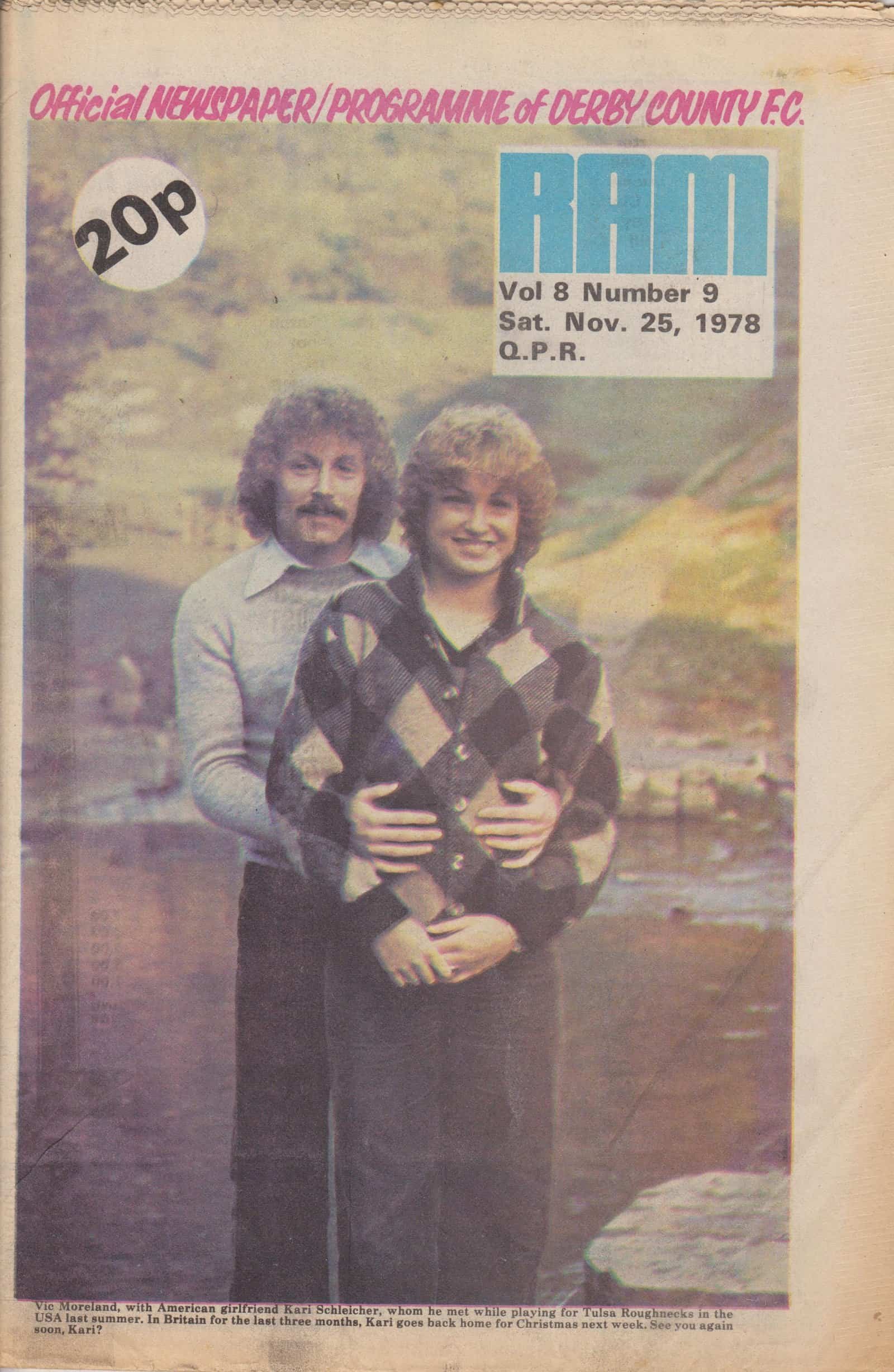 Match: Derby County v Queens Park Rangers Competition: League Division 1 Date: 25-Nov-1978 Comments: Folded newspaper issue Rating: 3 Condition: Marks on back Weight in grams: 160