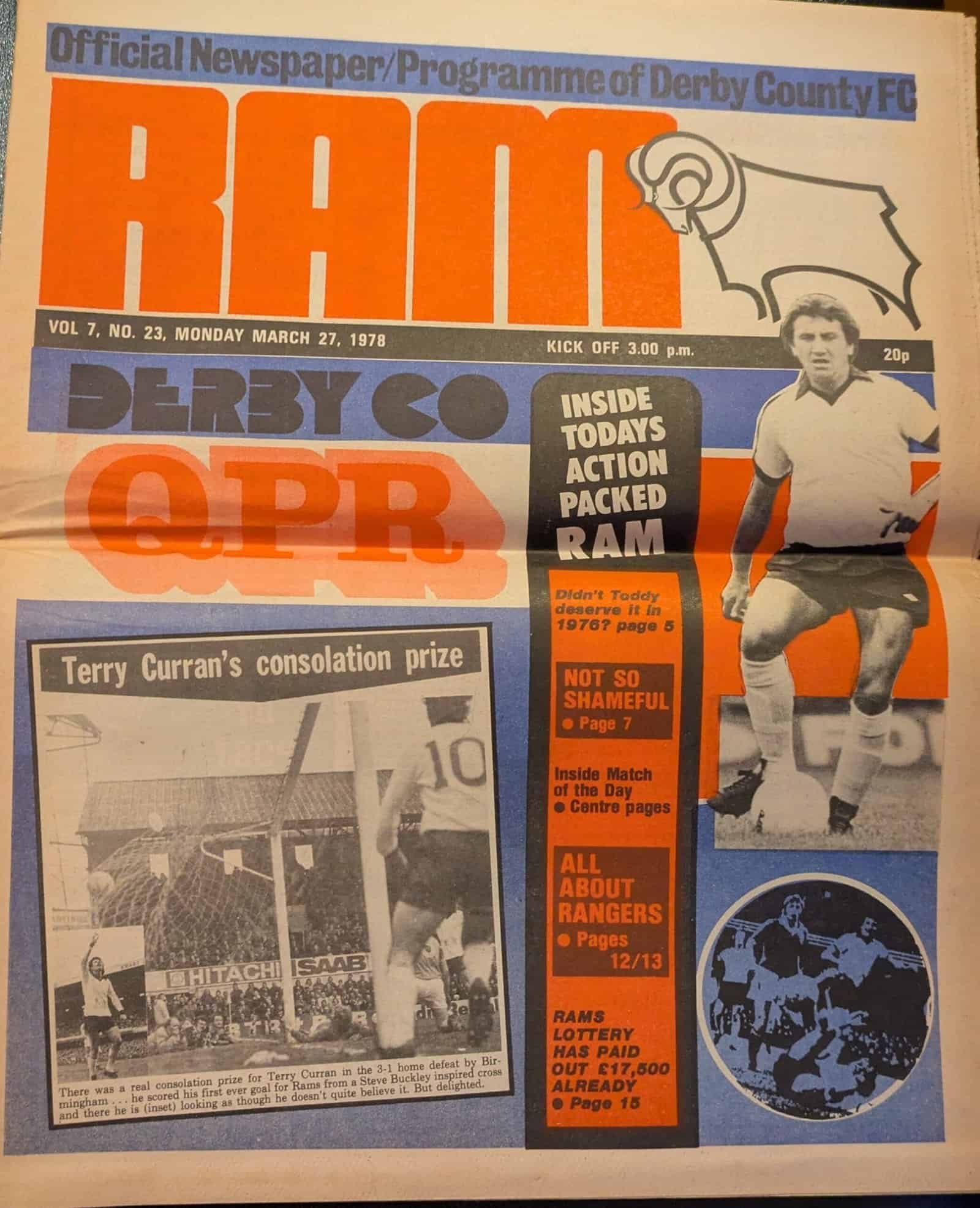 Match: Derby County v Queens Park Rangers Competition: League Division 1 Date: 27-Mar-1978 Comments: Folded newspaper issue Rating: 4 Condition: Very good Weight in grams: 300