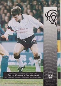 Match: Derby County v Sunderland Competition: Premier League Date: 18-09-1999 Comments: Centre fold poster missing Rating: 2 Condition: Very good Weight in grams: 180