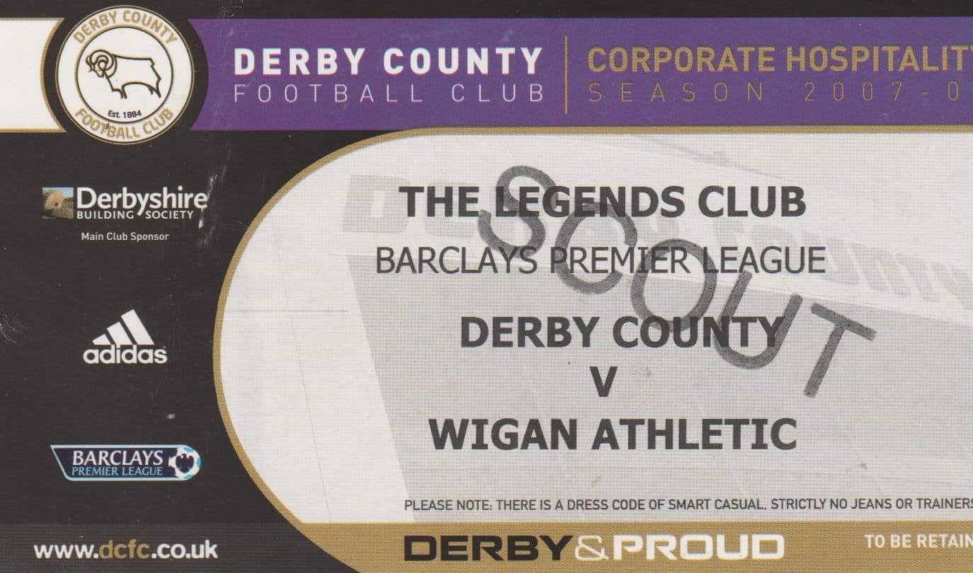 Match: Derby County v Wigan Athletic Competition: Premier League Date: 12-Jan-2008 Comments: Rating: 4 Condition: Very good Weight in grams: 80