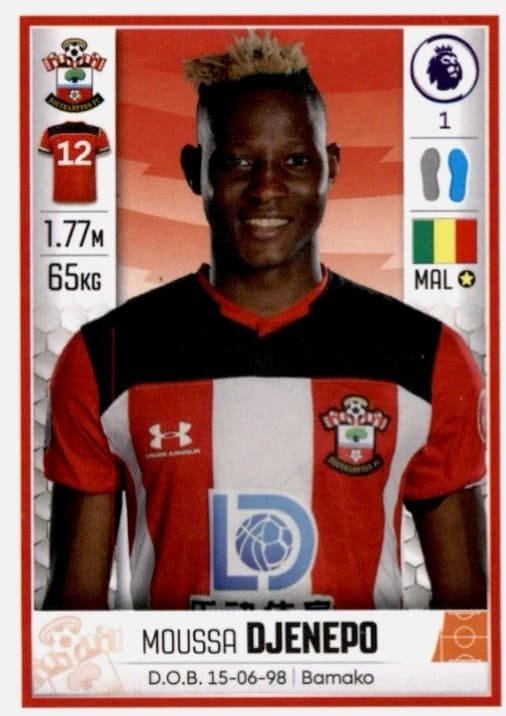 Title: Djenepo Moussa – 503 Club: Southampton Player: Moussa Djenepo Collection number: Merlin Premier League 2020 – 503 Rating: 4 Condition: Very good Weight in grams: 10