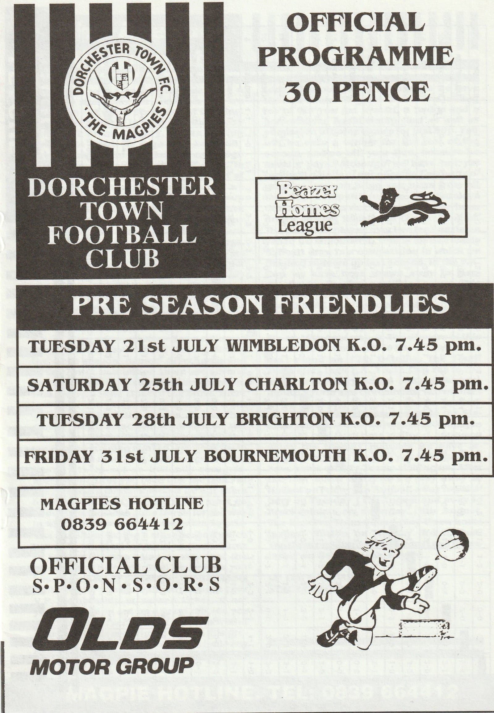 Match: Dorchester Town v Brighton & Hove Albion Competition: Friendly Date: 28-Jul-1992 Comments: Joint issue for all pre season games Rating: 4 Condition: Very good Weight in grams: 40