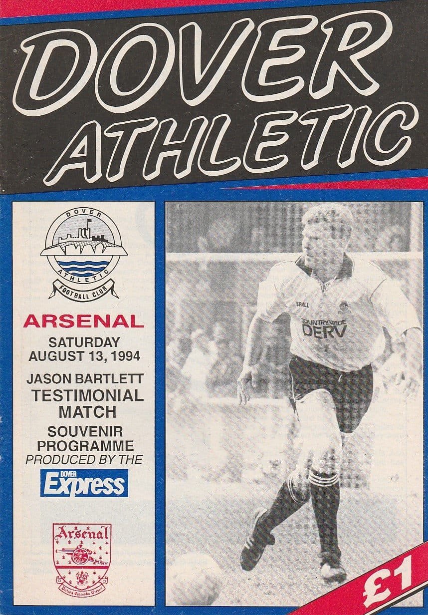 Match: Dover Athletic v Arsenal Competition: Friendly Date: 13-Aug-1994 Comments: Jason Bartlett Testimonial Match Rating: 4 Condition: Good Weight in grams: 40