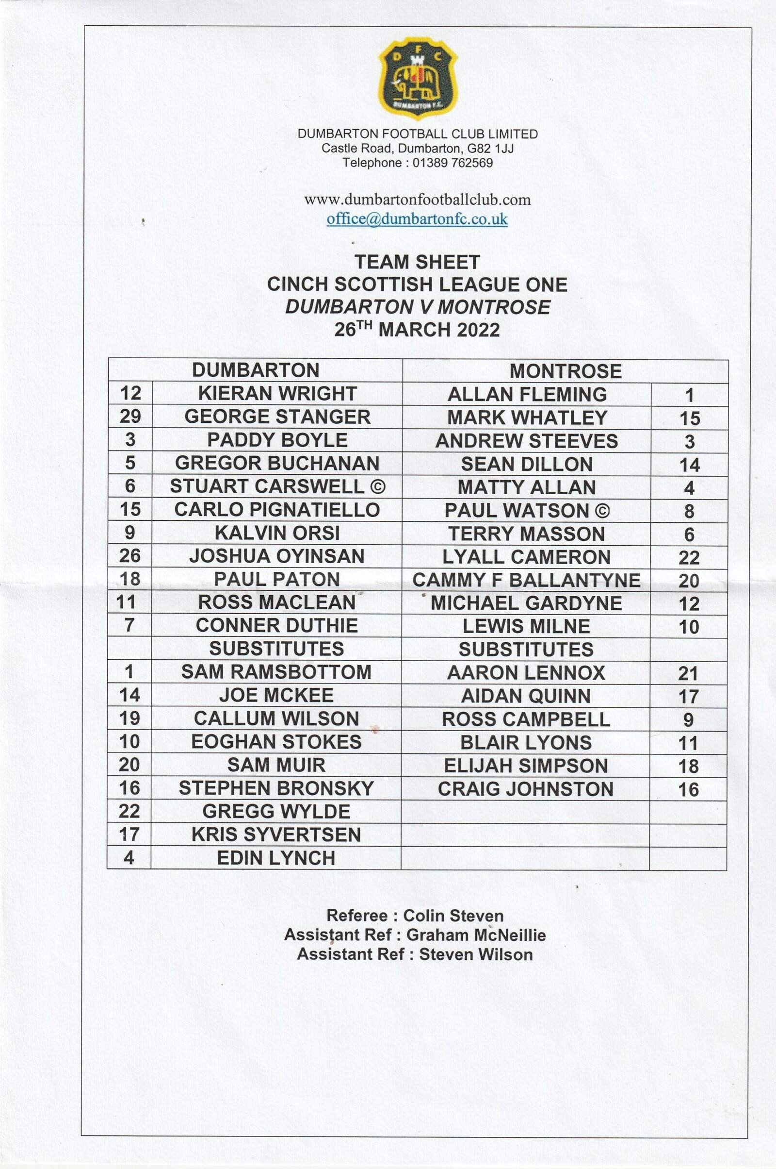 Match: Dumbarton v Montrose Competition: Scottish League 1 Date: 26-Mar-2022 Comments: Rating: 3 Condition: Fold Weight in grams: 20