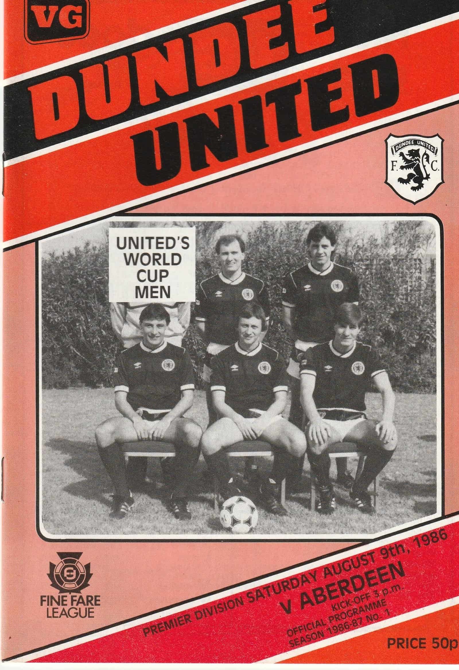 Match: Dundee United v Aberdeen Competition: Scottish Premier Division Date: 09-Aug-1986 Comments: Rating: 4 Condition: Very good Weight in grams: 80