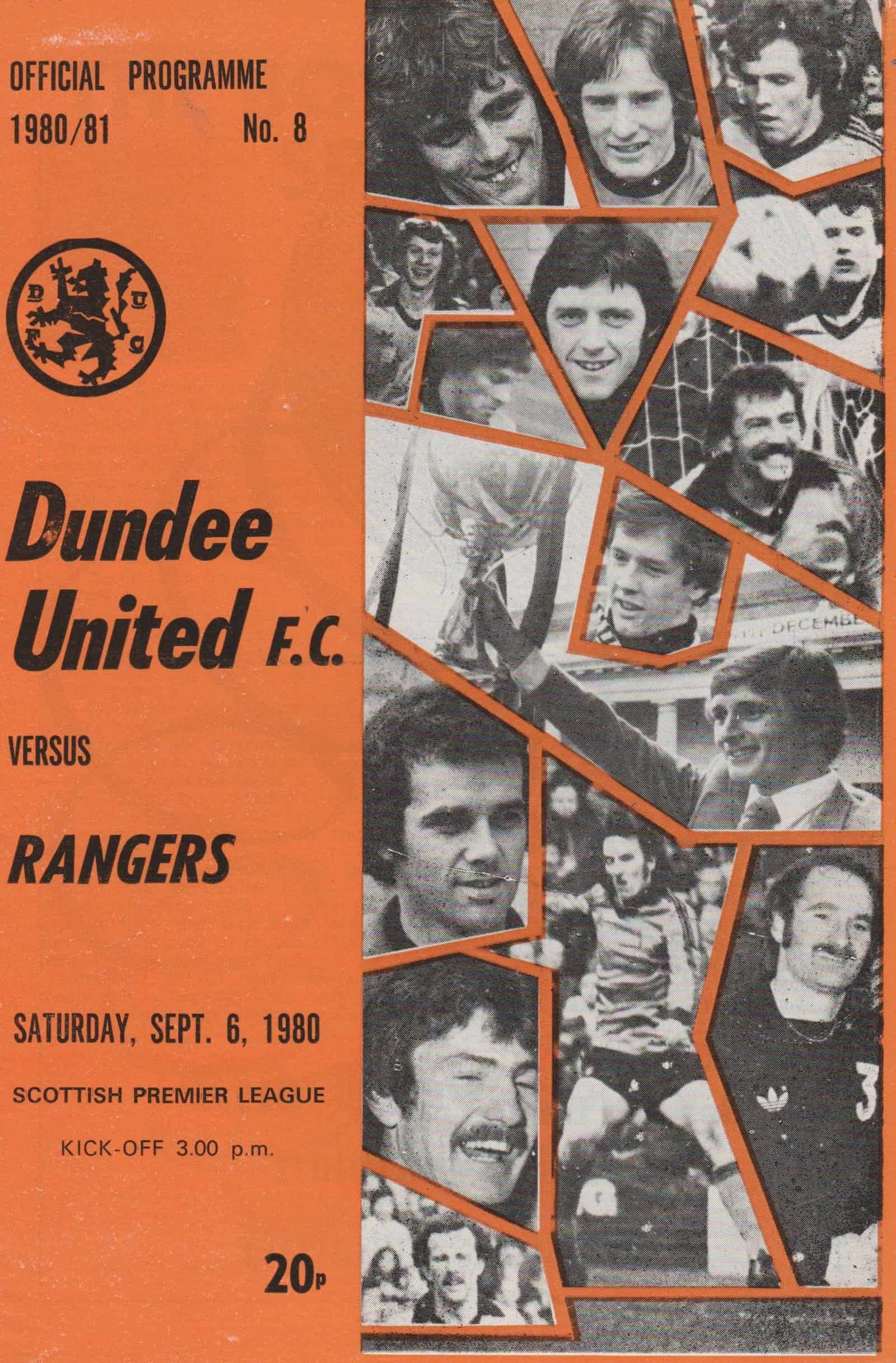 Match: Dundee United v Glasgow Rangers Competition: Scottish Premier League Date: 06-Sep-1980 Comments: Rating: 4 Condition: Very good Weight in grams: 60