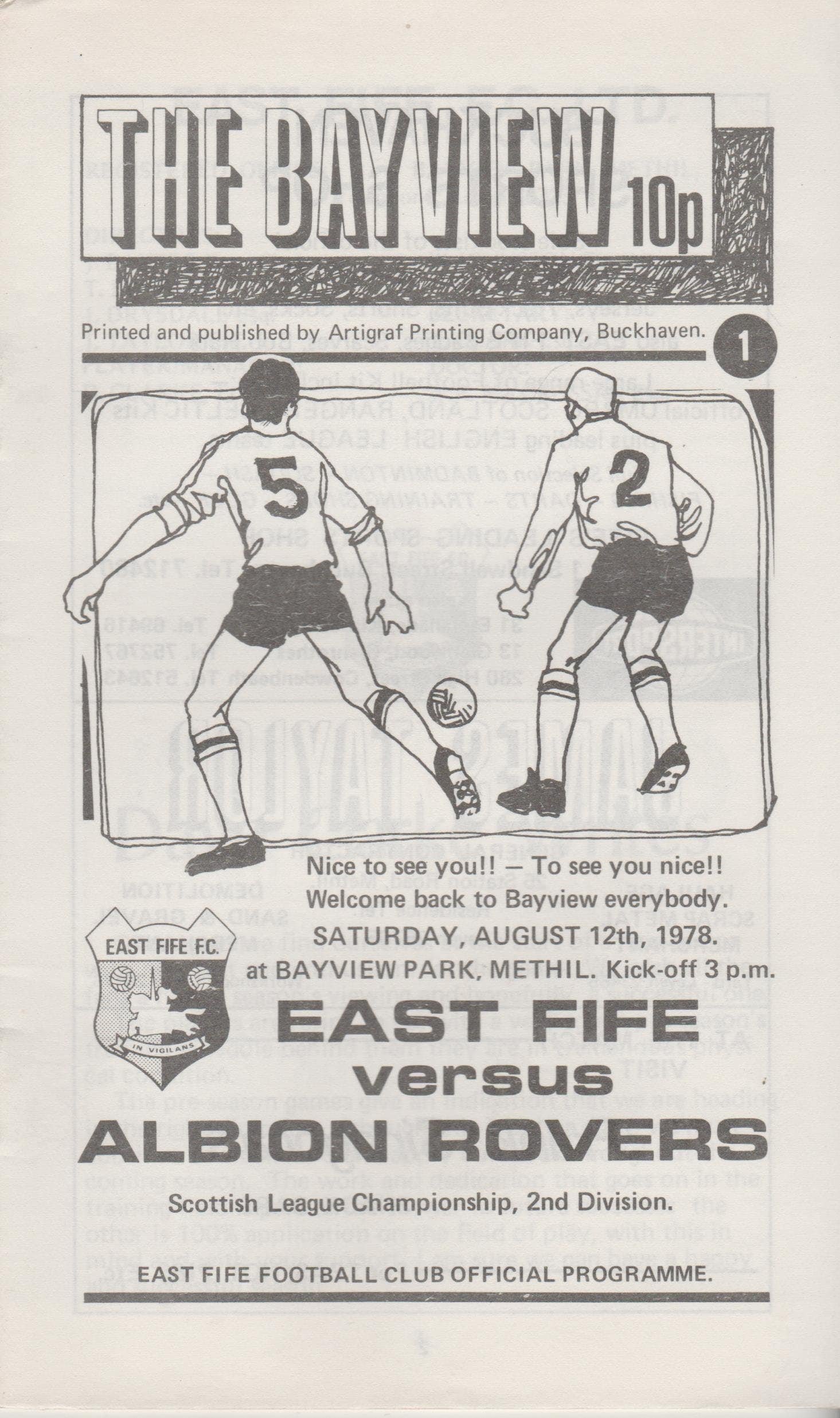 Match: East Fife v Albion Rovers Competition: Scottish League Division 2 Date: 12-Aug-1978 Comments: Rating: 4 Condition: Very good Weight in grams: 40