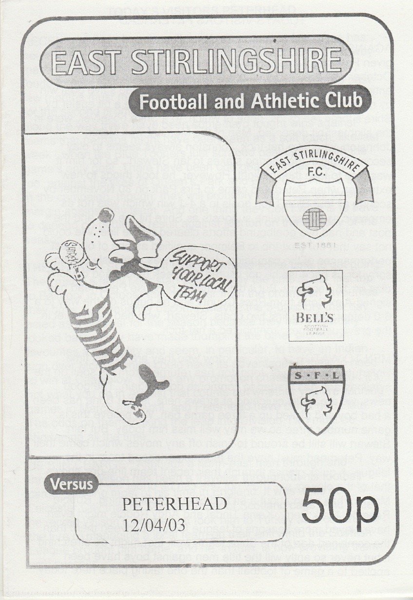 Match: East Stirling v Peterhead Competition: Scottish League Division 3 Date: 12-Apr-2003 Comments: Rating: 4 Condition: Very good Weight in grams: 40