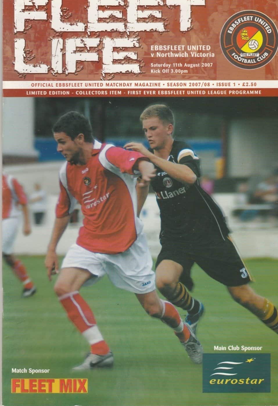 Match: Ebbsfleet United v Northwich Victoria Competition: Blue Square Bet Premier League Date: 11-Aug-2007 Comments: First game at home as renamed club Rating: 4 Condition: Faint corner fold Weight in grams: 160