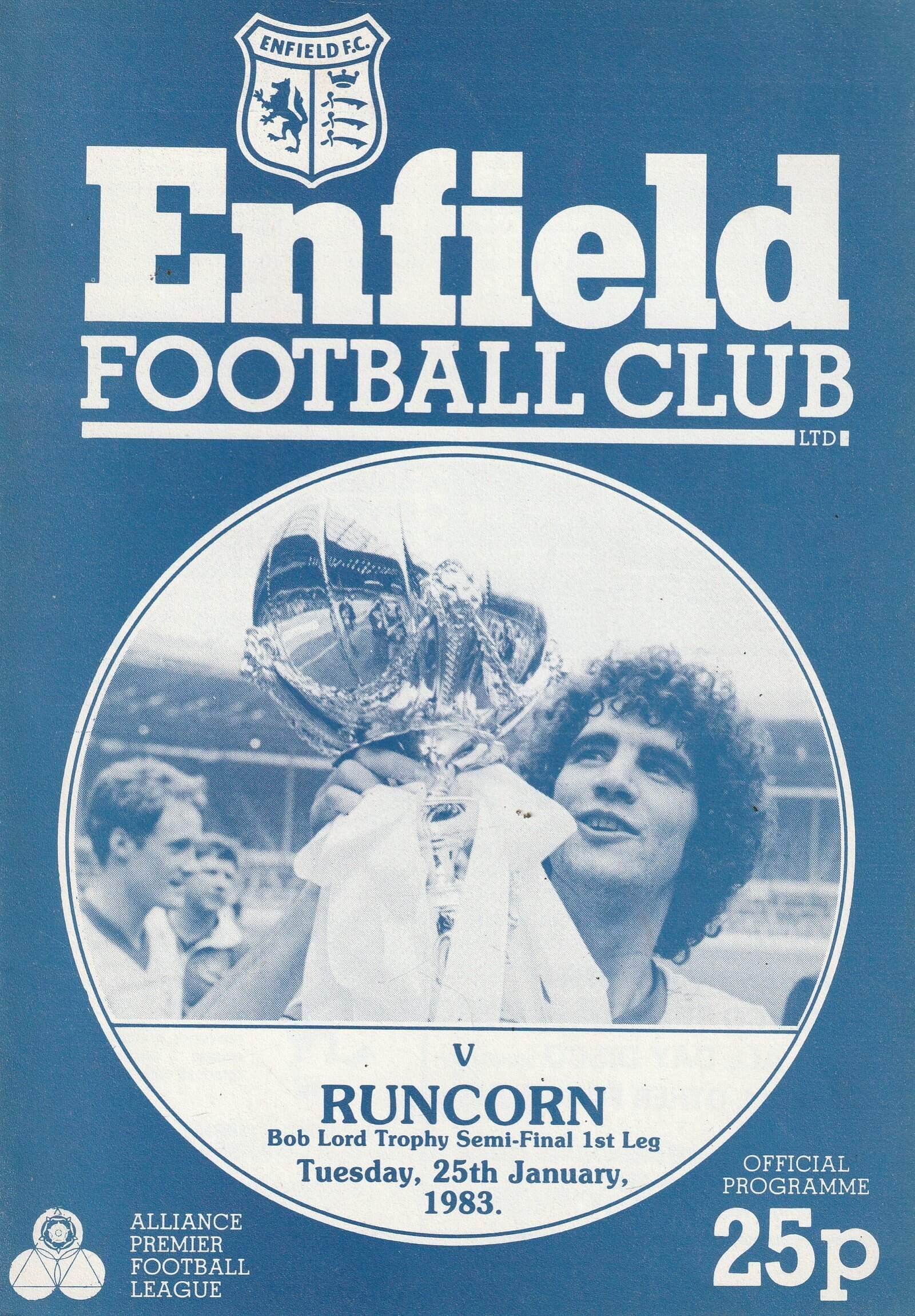 Match: Enfield v Runcorn Competition: Bob Lord Trophy Semi Final 1st leg Date: 25-Jan-1983 Comments: Rating: 4 Condition: Very good Weight in grams: 100