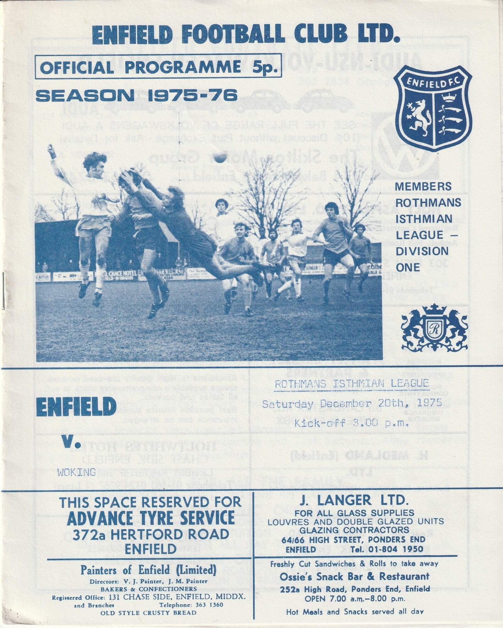Match: Enfield v Woking Competition: Rothmans Isthmian League Date: 20-Dec-1975 Comments: Rating: 3 Condition: Score on team line ups page Weight in grams: 40