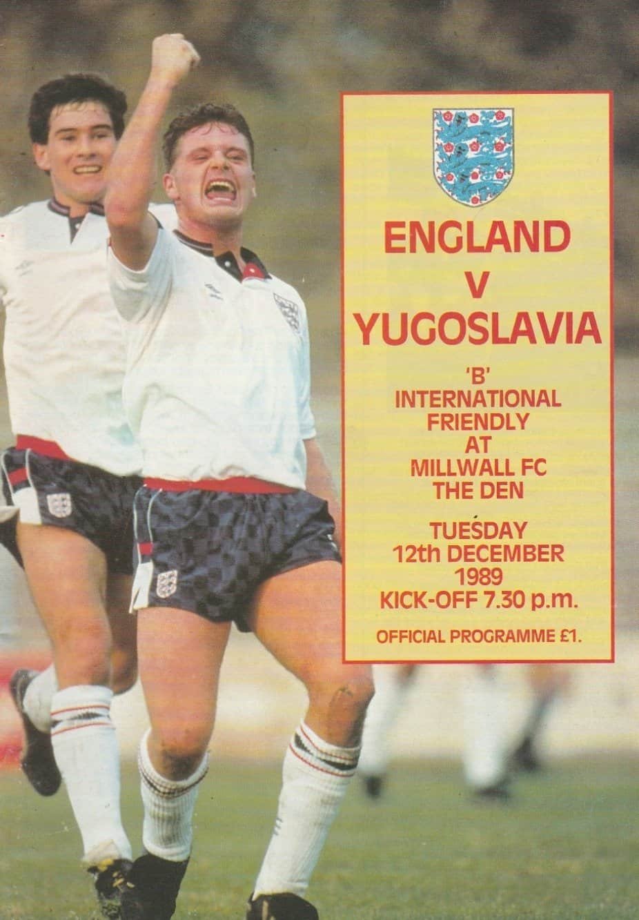 Match: England B v Yugoslavia B Competition: International Friendly Date: 12-Dec-1989 Comments: Played at Millwall FC Rating: 4 Condition: Very good Weight in grams: 100