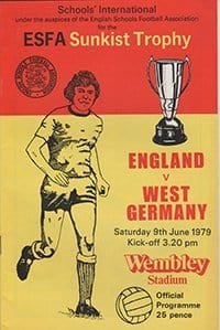 Match: England Schoolboys v West Germany Schoolboys Competition: Sunkist Trophy Date: 09-06-1979 Comments: Rating: 4 Condition: Very good Weight in grams: 60