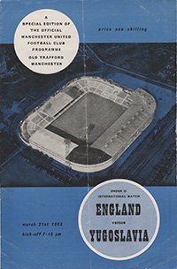 Match: England u23 v Yugoslavia u23 Competition: Under 23 International Date: 21-03-1963 Comments: at Manchester United FC Rating: 3 Condition: Folds, mark on face, small tear on back Weight in grams: 80