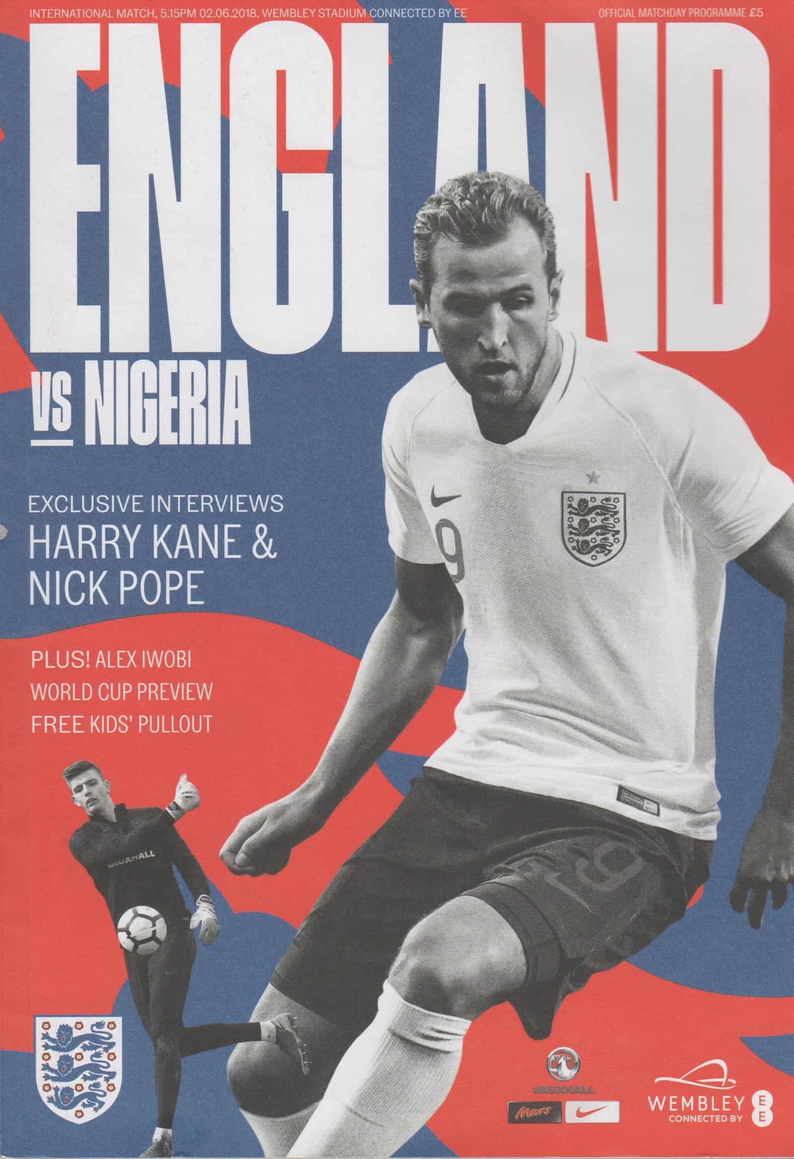 Match: England v Nigeria Competition: International Friendly Date: 02-Jun-2018 Comments: Rating: 4 Condition: Very good Weight in grams: 250