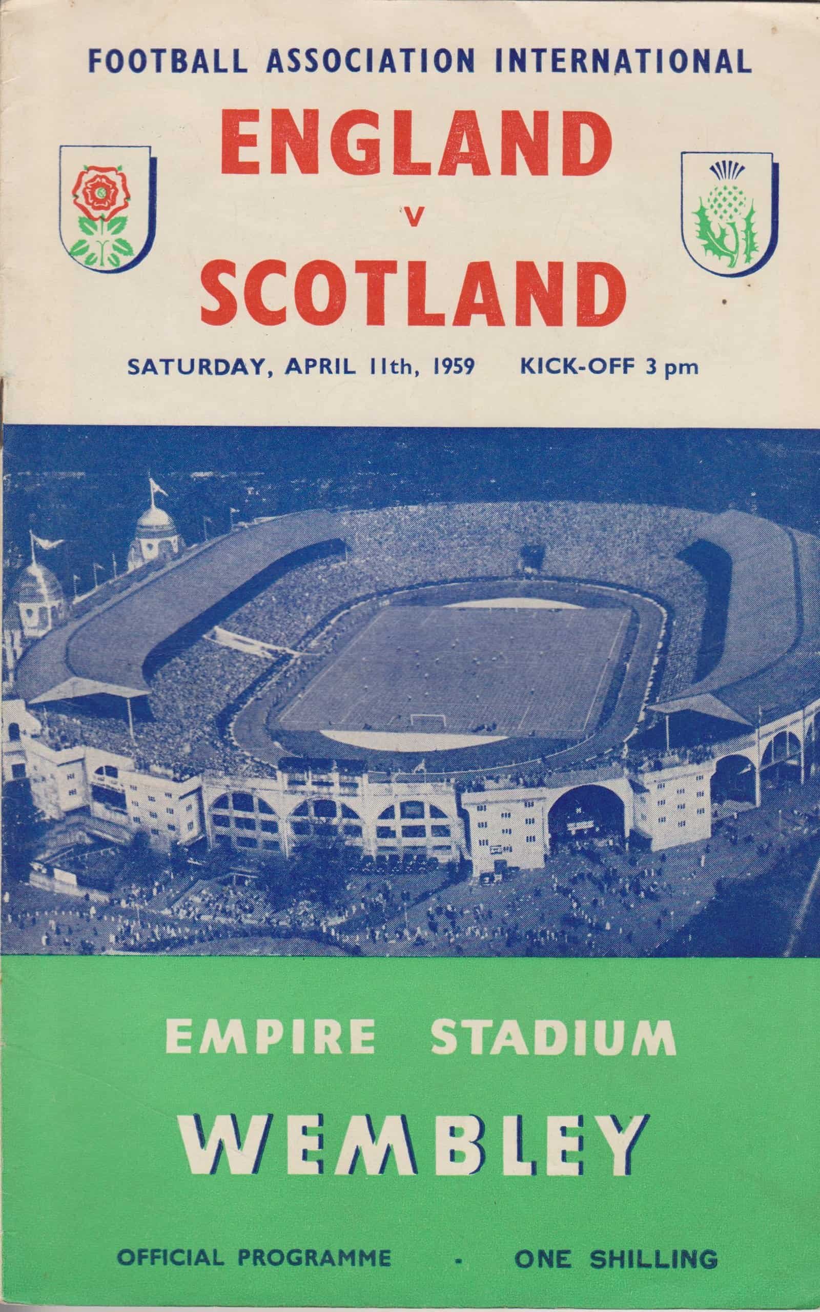 Match: England v Scotland Competition: International Friendly Date: 11-04-1959 Comments: Rating: 4 Condition: Very good Weight in grams: 80