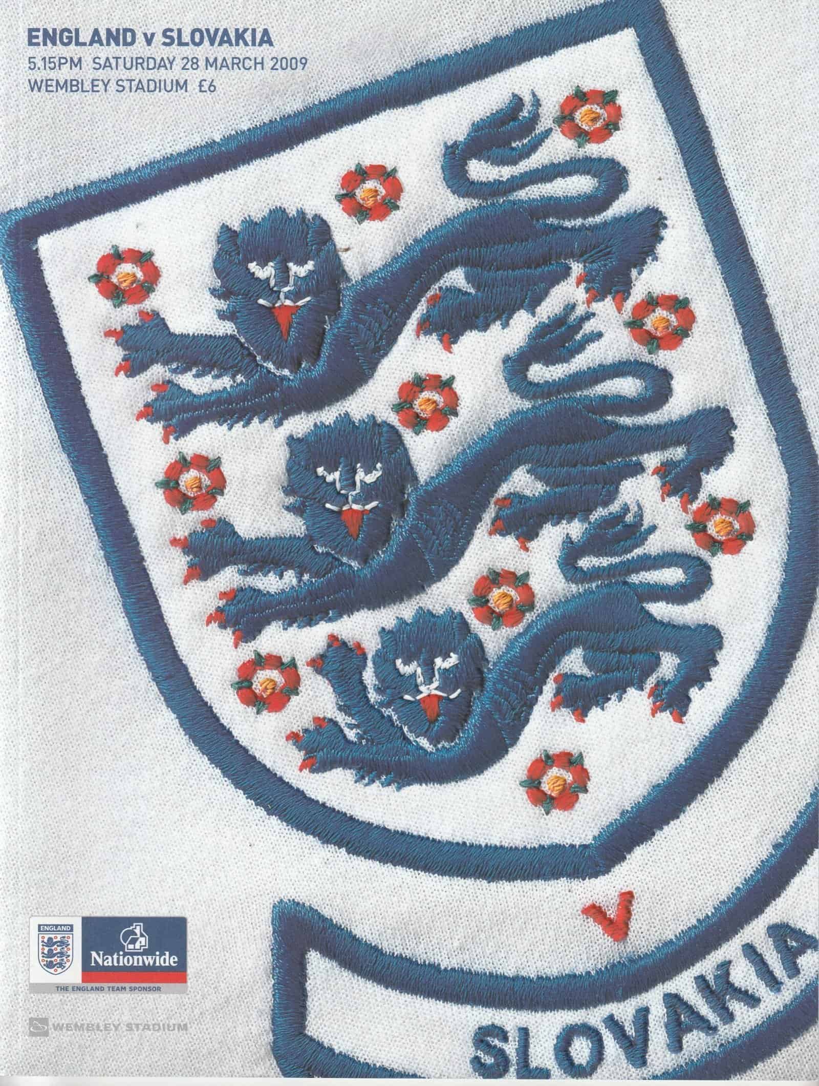 Match: England v Slovakia Competition: International Friendly Date: 28-Mar-2009 Comments: Rating: 5 Condition: Excellent Weight in grams: 280