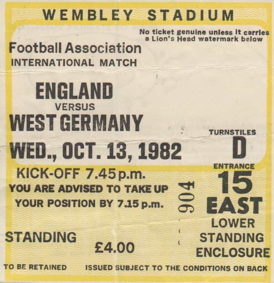 Match: England v West Germany Competition: International Friendly Date: 13-10-1982 Comments: Rating: 4 Condition: Fold Weight in grams: 10
