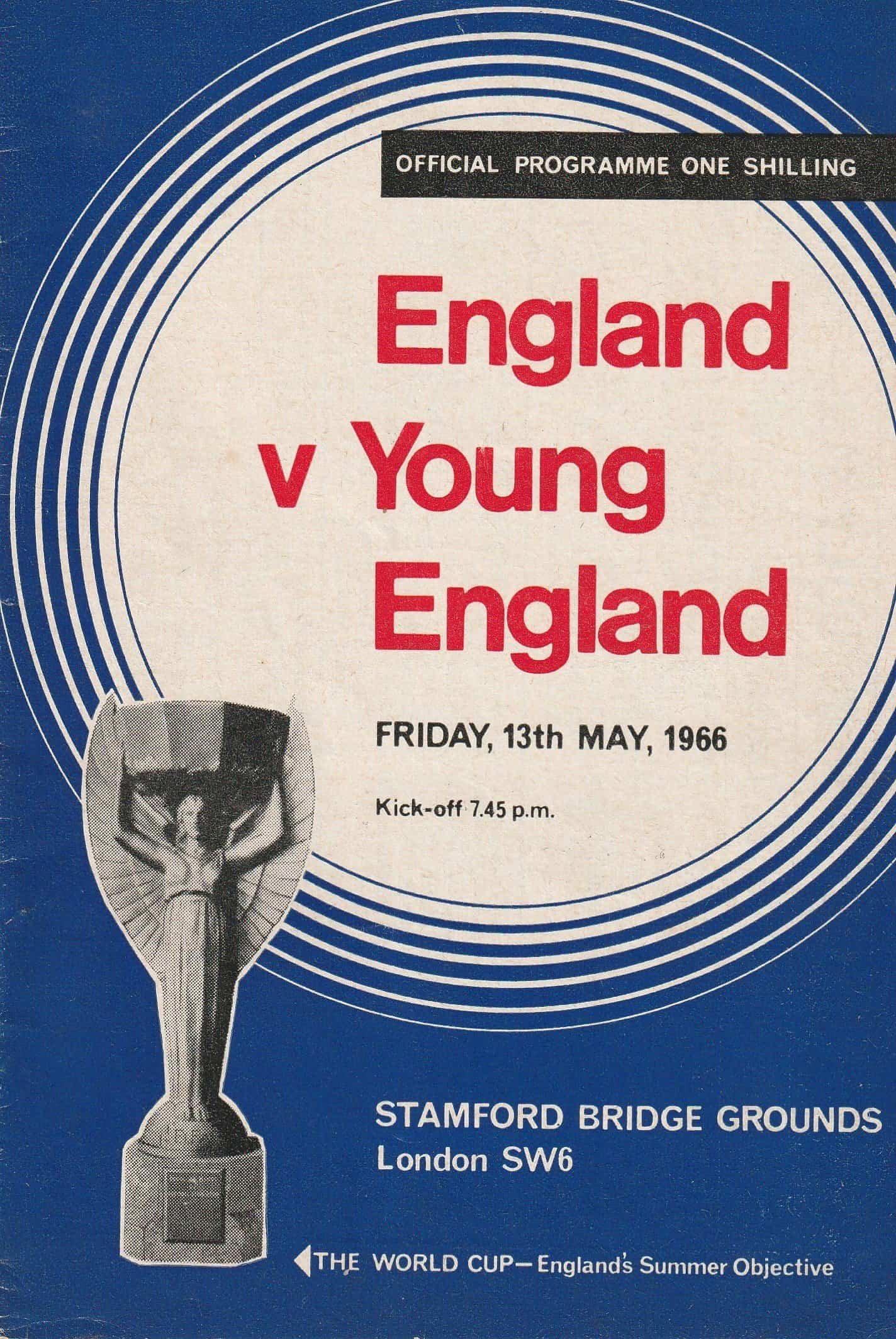 Match: England v Young England Competition: Representative Match Date: 13-May-1966 Comments: Played at Chelsea FC, Rating: 3 Condition: Centre fold removed Weight in grams: 40