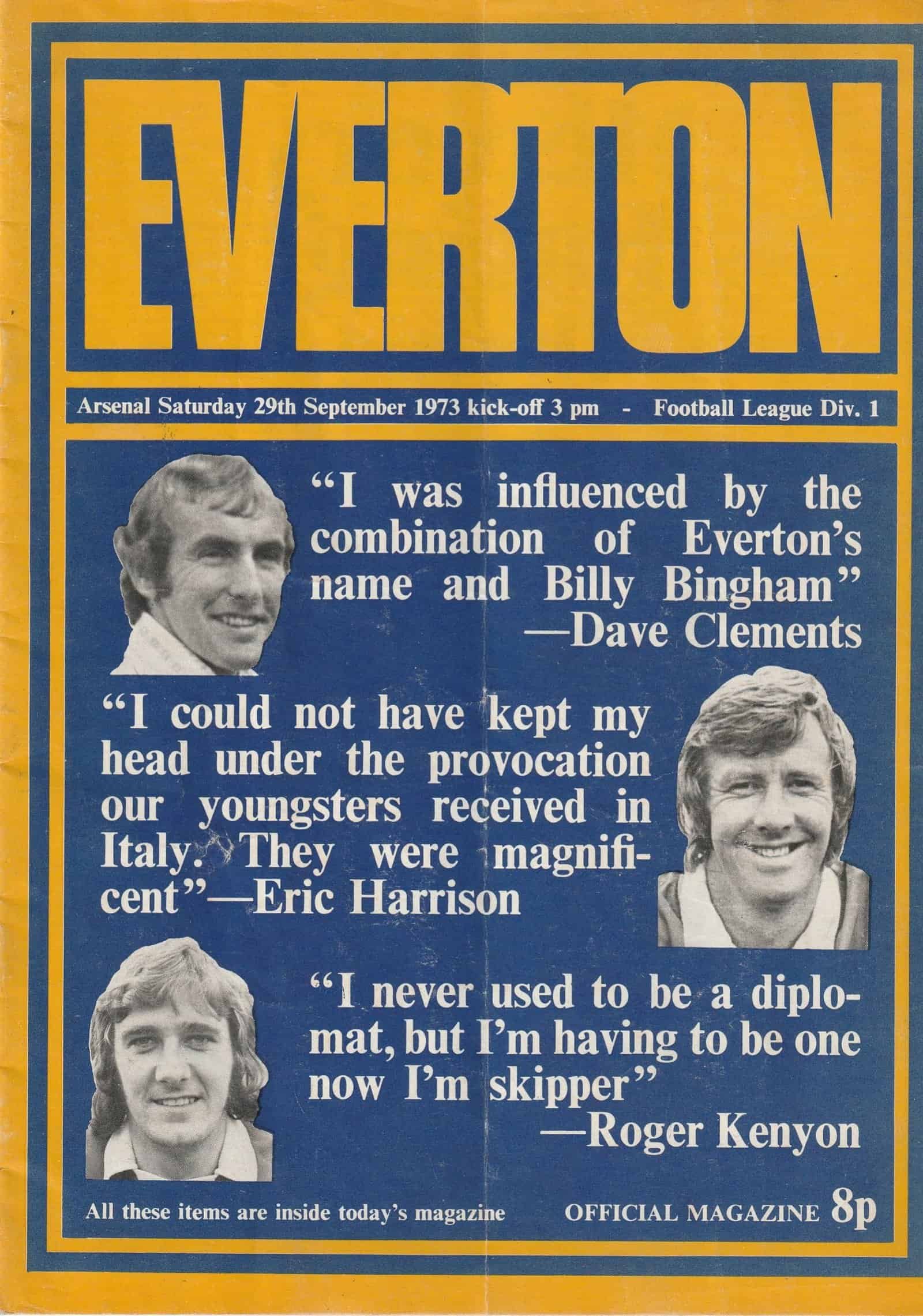 Match: Everton v Arsenal Competition: League Division 1 Date: 29-Sep-1973 Comments: Rating: 3 Condition: Team changes, fold, crossword completed, slight nicks on back page Weight in grams: 100