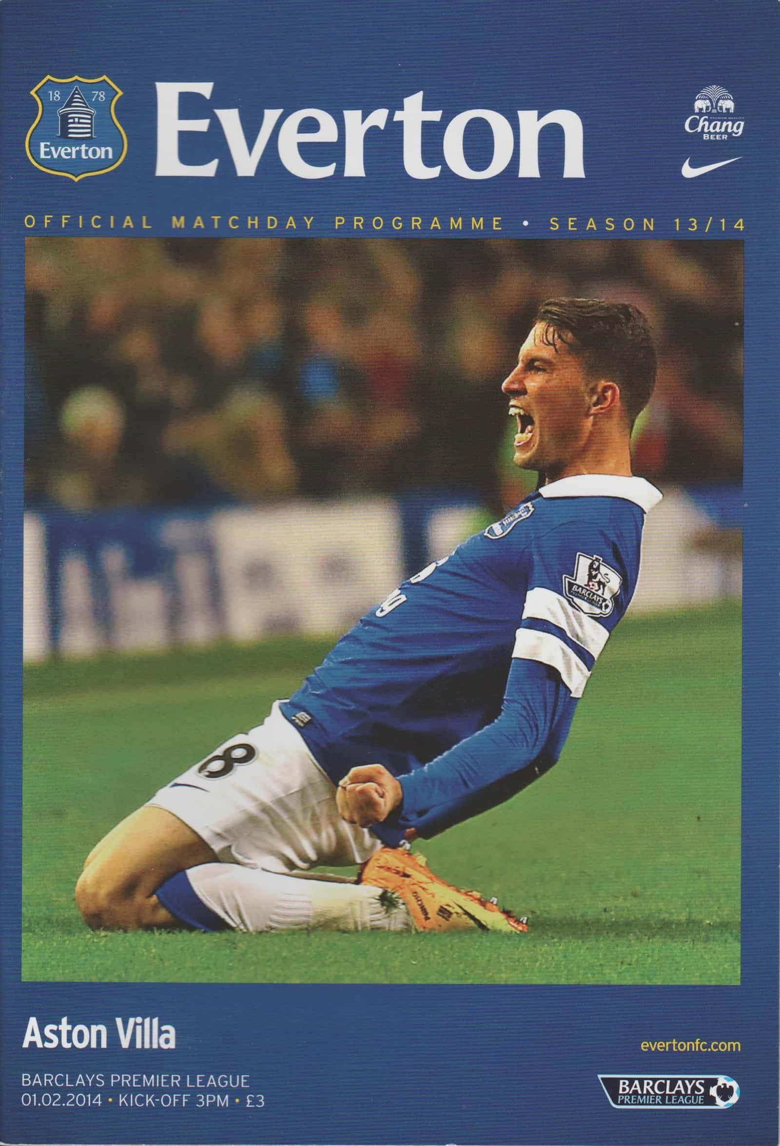 Match: Everton v Aston Villa Competition: Premier League Date: 01-02-2014 Comments: Rating: 5 Condition: Excellent Weight in grams: 200