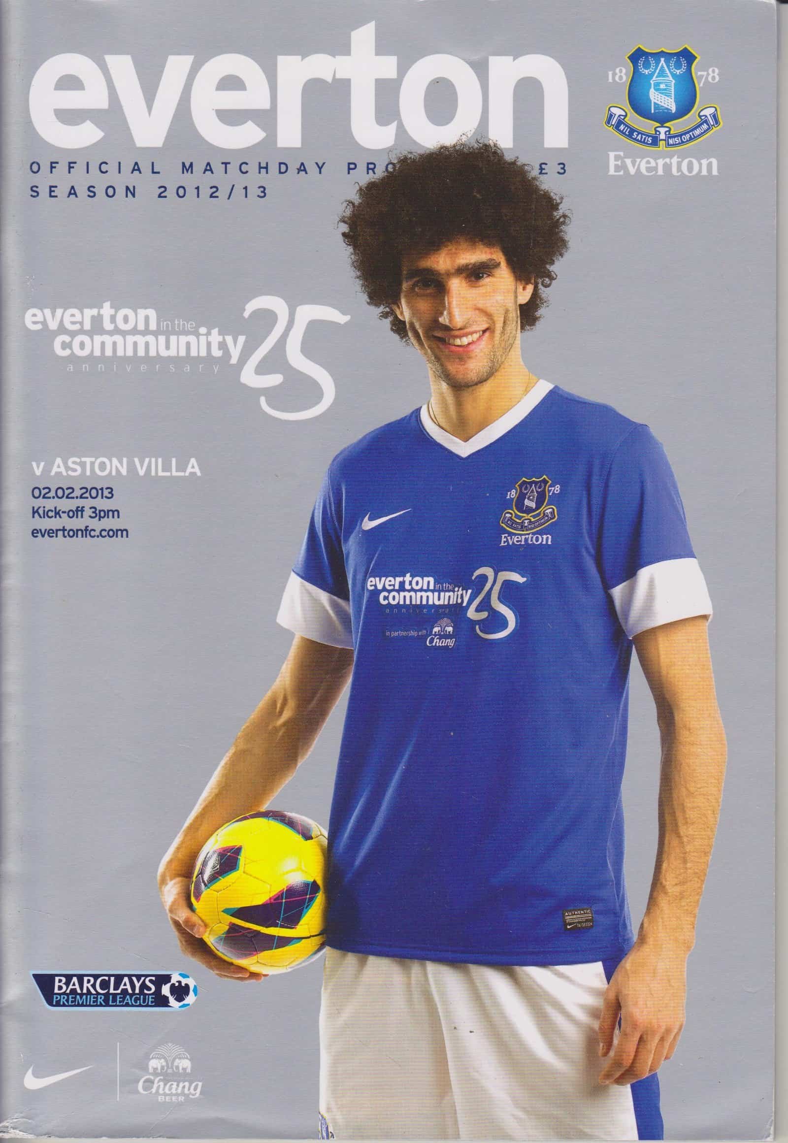 Match: Everton v Aston Villa Competition: Premier League Date: 02-02-2013 Comments: Rating: 5 Condition: Excellent Weight in grams: 200