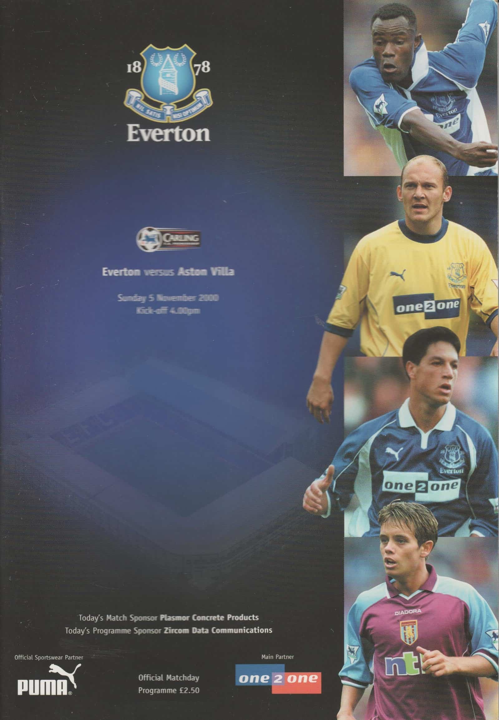 Match: Everton v Aston Villa Competition: Premier League Date: 05-11-2000 Comments: Rating: 5 Condition: Excellent Weight in grams: 140