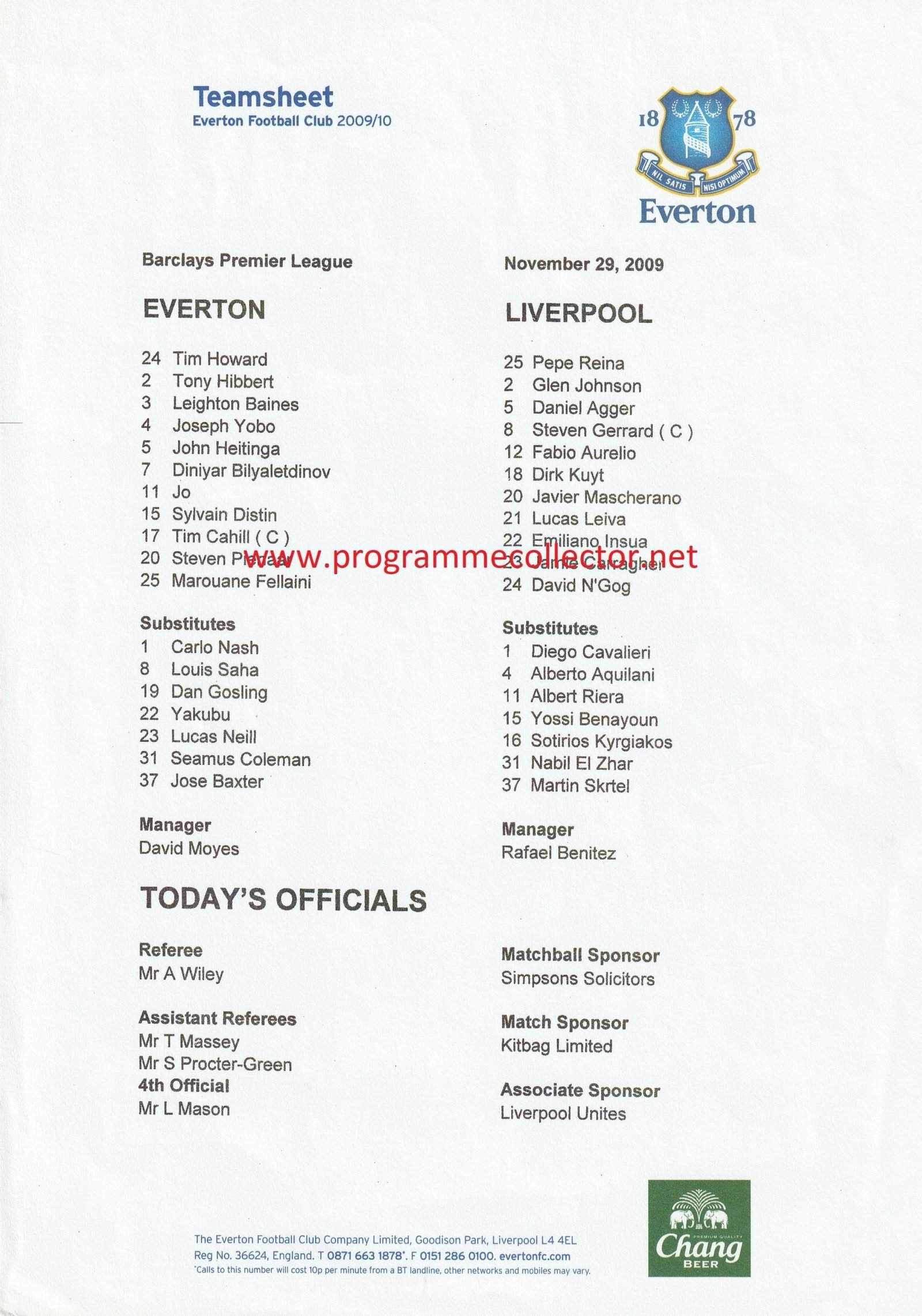 Match: Everton v Liverpool Competition: Premier League Date: 29-Nov-2009 Comments: Rating: 4 Condition: Very good Weight in grams: 20