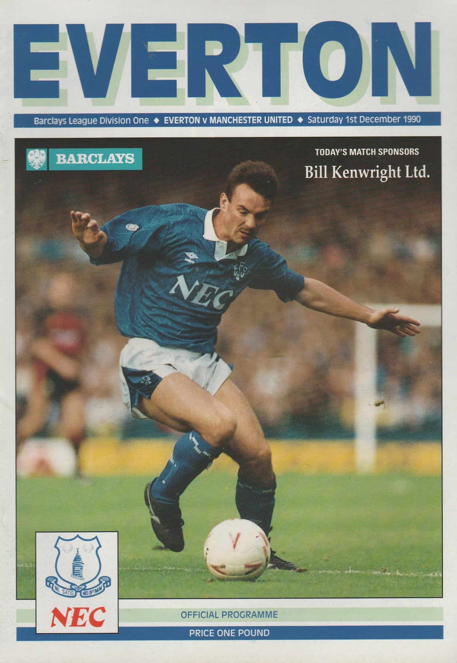 Match: Everton v Manchester United Competition: League Division 1 Date: 01-Dec-1990 Comments: Rating: 4 Condition: Very good Weight in grams: 100