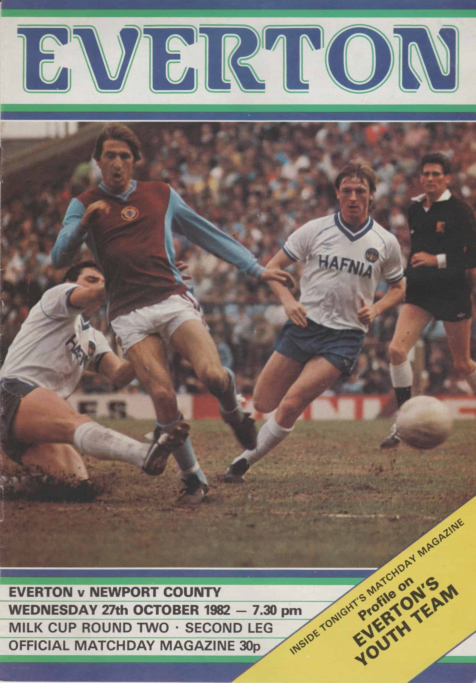 Match: Everton v Newport County Competition: League Cup 2nd Round 2nd leg Date: 27-Oct-1982 Comments: Rating: 3 Condition: Faint fold Weight in grams: 80