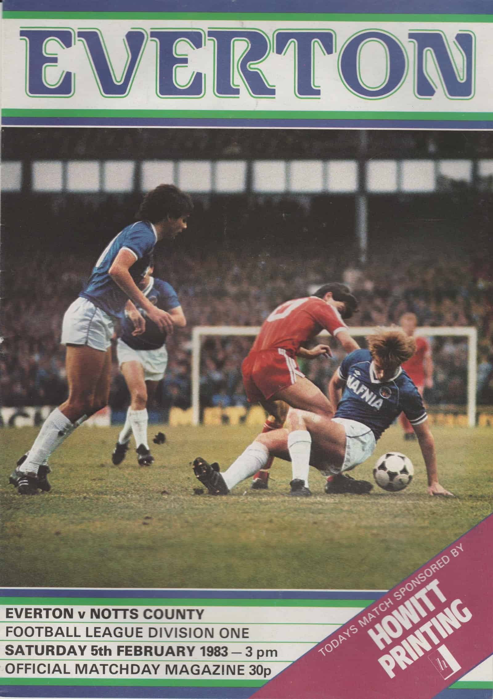 Match: Everton v Notts County Competition: League Division 1 Date: 05-Feb-1983 Comments: Rating: 4 Condition: Very good Weight in grams: 80