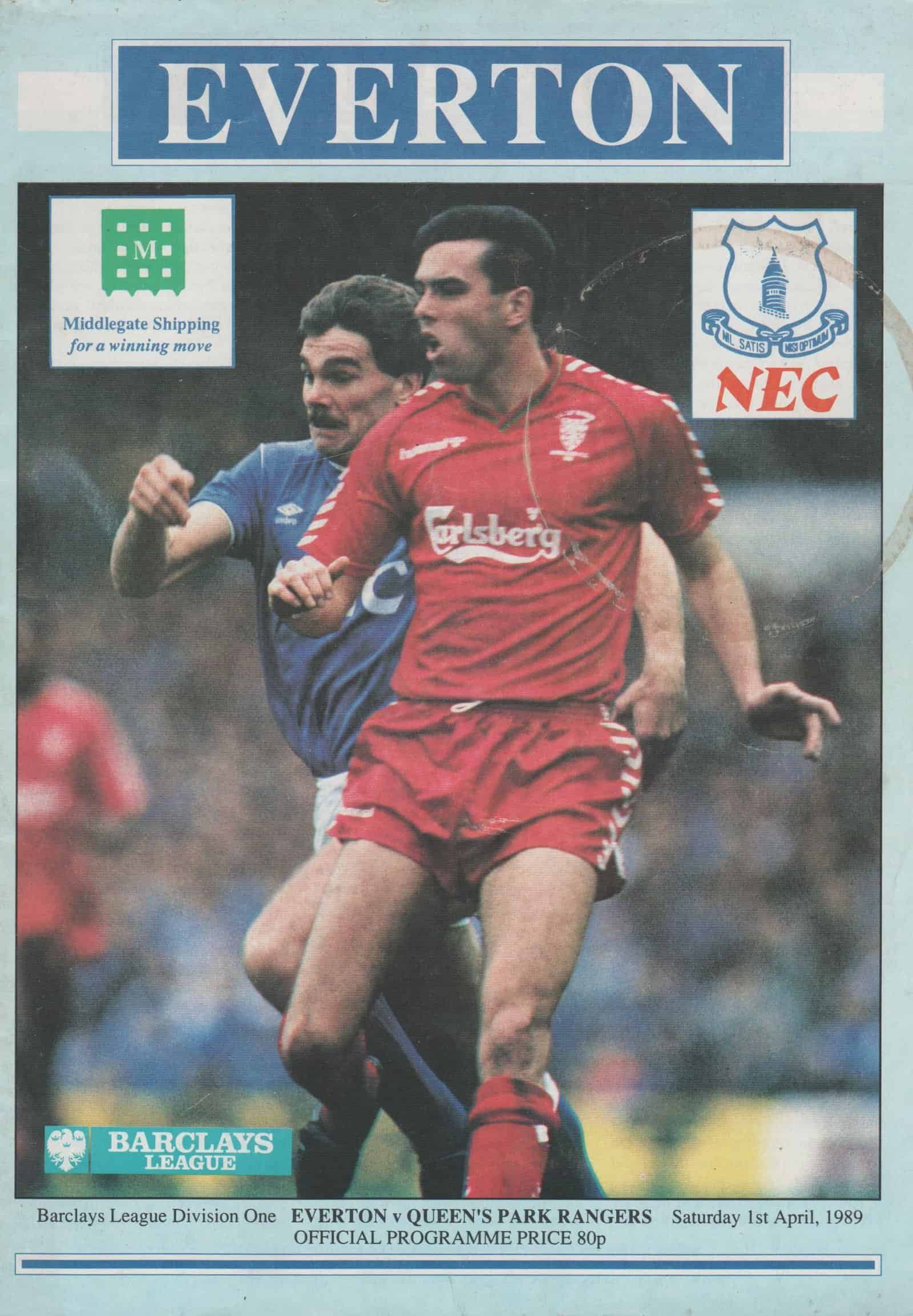 Match: Everton v Queens Park Rangers Competition: League Division 1 Date: 01-Apr-1989 Comments: Rating: 3 Condition: Cup stain on cover, marks on back Weight in grams: 80