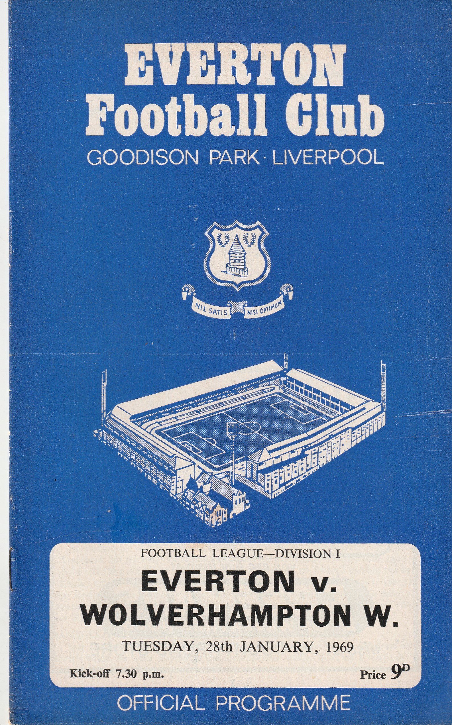 Match: Everton v Wolverhampton Wanderers Competition: League Division 1 Date: 28-Jan-1969 Comments: Rating: 4 Condition: Very good Weight in grams: 100