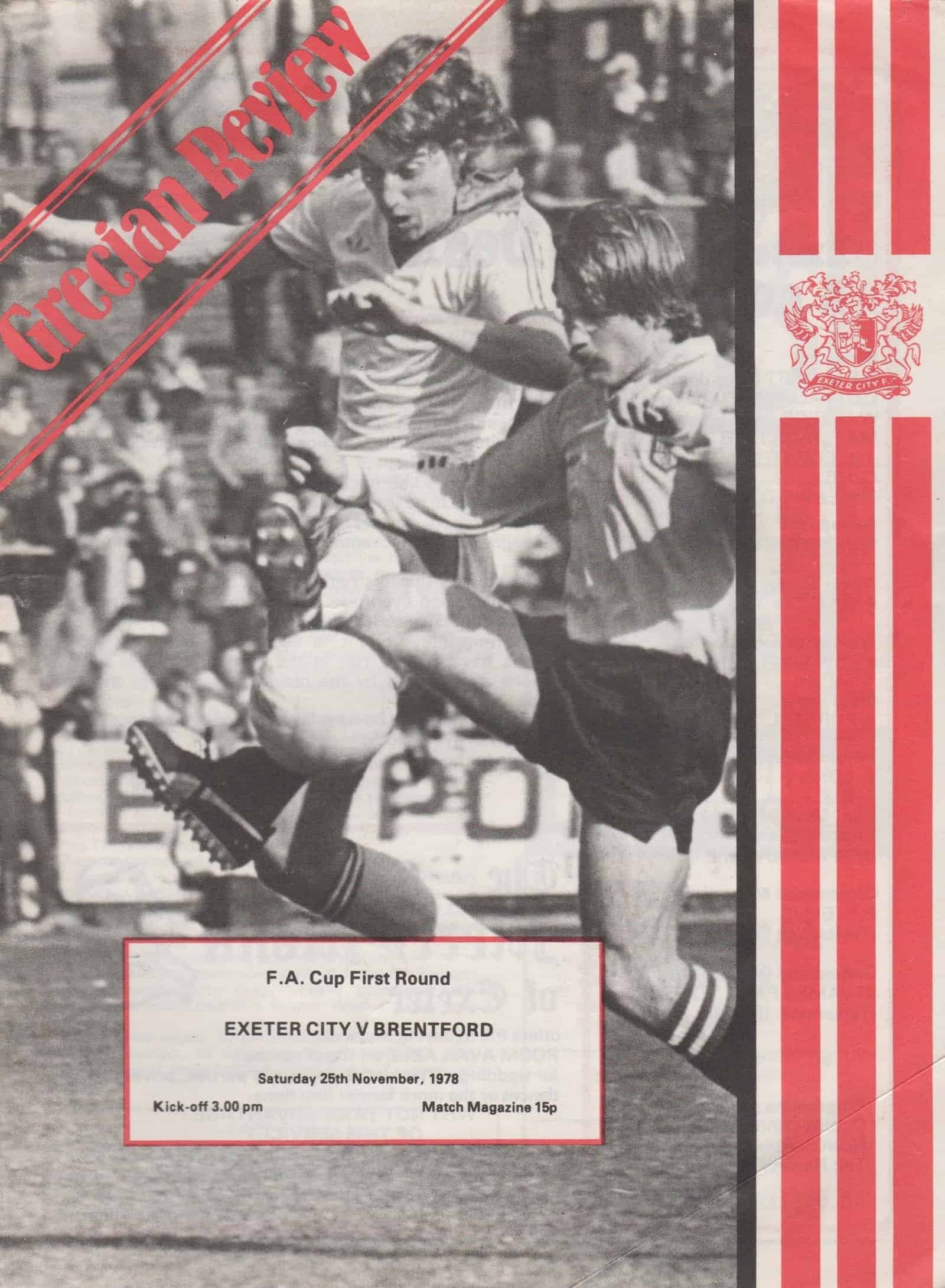Match: Exeter City v Brentford Competition: FA Cup 1st Round Date: 25-Nov-1978 Comments: Rating: 3 Condition: Faint corner crease on cover Weight in grams: 60