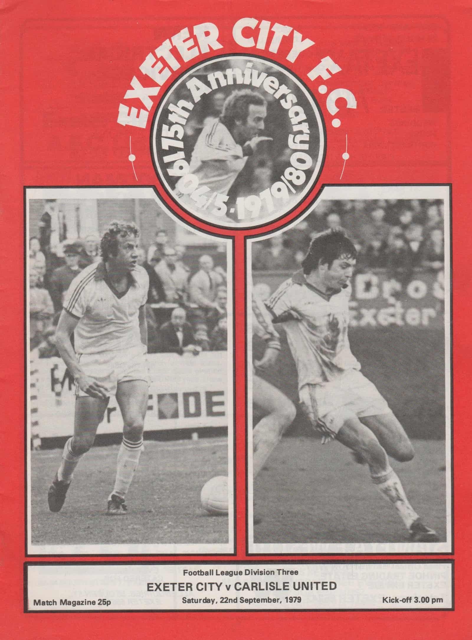 Match: Exeter City v Carlisle United Competition: League Division 3 Date: 22-Sep-1979 Comments: Rating: 4 Condition: Very good Weight in grams: 60